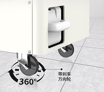 機(jī)器采用了帶有剎車的萬向輪設(shè)計(jì),方便移動(dòng)到任意空間角落進(jìn)行使用。