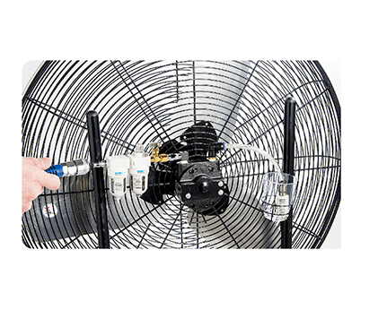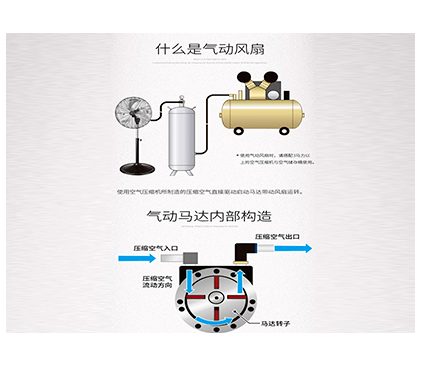 使用空氣壓縮機所制造的壓縮機空氣驅(qū)動馬達(dá),帶動風(fēng)扇運轉(zhuǎn)。